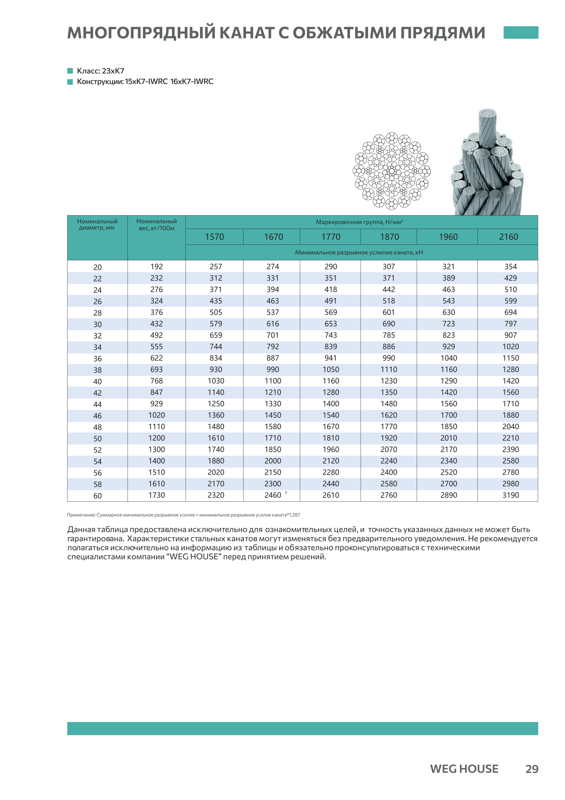 Конструкции: 15xK7-IWRC 16xK7-IWRC