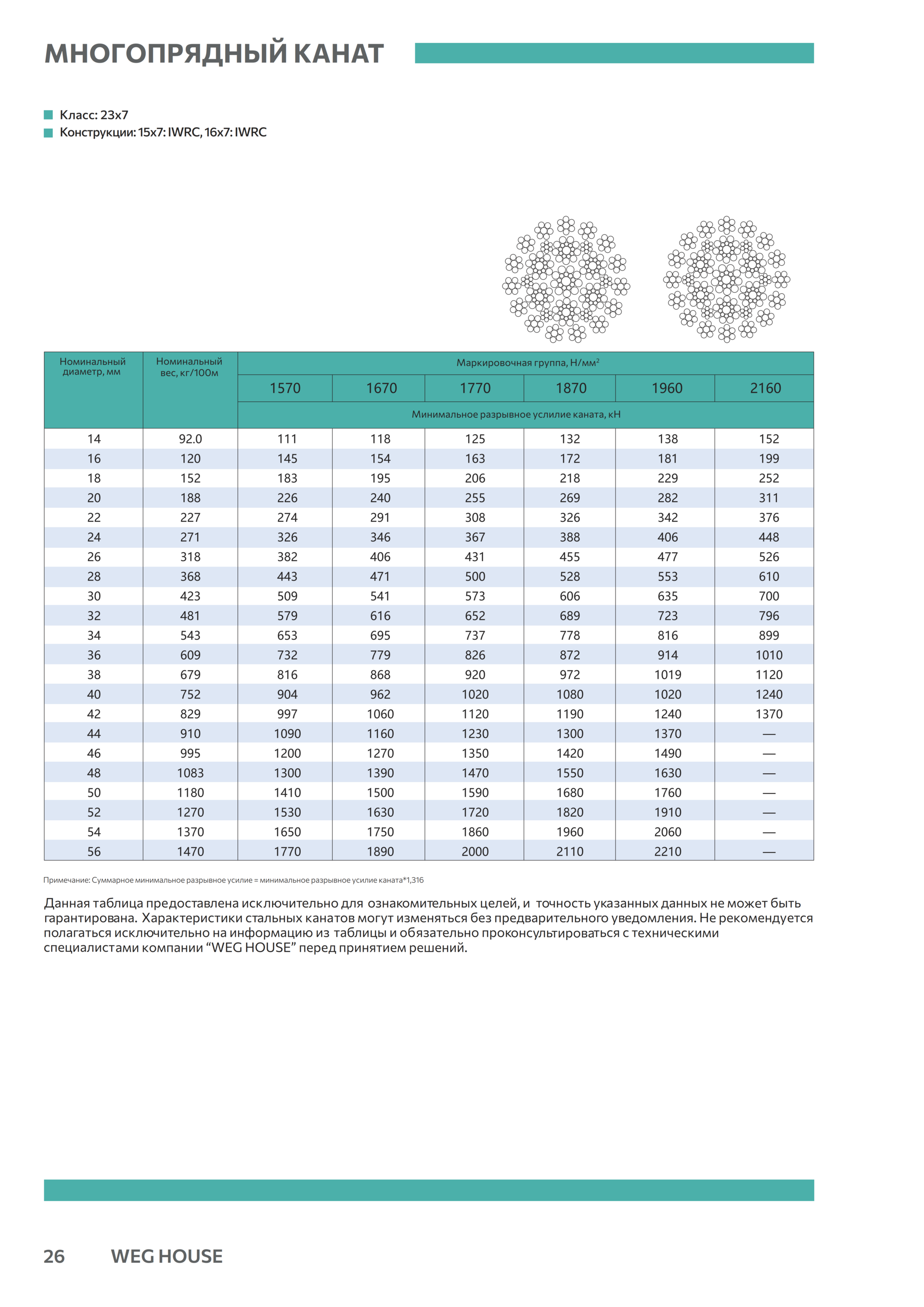 Конструкции: 15x7: IWRC, 16x7: IWRC